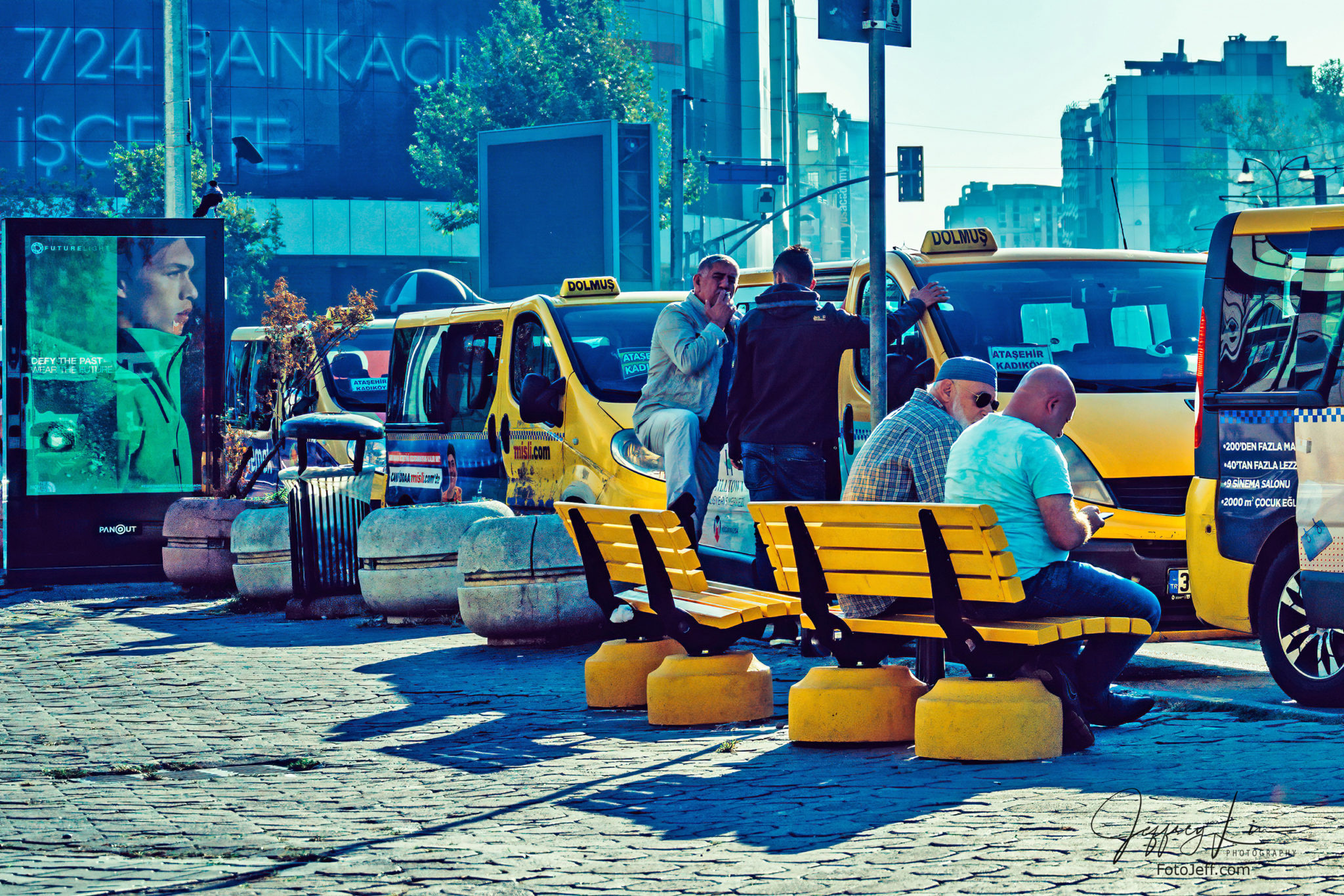 A dolmuş is a shared taxi that seats maximum of 8 passengers. They drive day and night on pre-determined routes, but without set stops. The idea is that each passenger only pays one eight of the fee a regular Istanbul taxi would charge for the same destination.